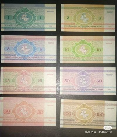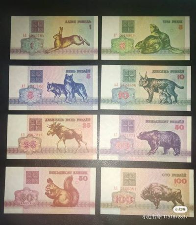 白俄罗斯动物钞,8张全套,品相完美。