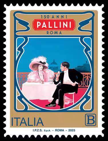 这张是意大利邮政2023年发行的Martini品牌160周年纪念邮票,属于意大利“生产与经济体系杰出代表”系列,核心是纪念Martini(马天尼)品牌创立160周年。 1. 文字含义 - “160 ANNI”:意大利语,意为“160年”,对应Martini自1863年创立至2023年的160周年历程。 - “MARTINI”:品牌名,该品牌以味美思酒闻名,是意大利餐饮文化的标志性符号。 - “ITALIA”:意大利,表明邮票发行国;“B”是意大利邮政的普通信件资费标识,面值约1.2欧元。 2. 图案寓意 邮票上的简约女性剪影戴宽檐帽、手持马天尼酒杯,是对Martini品牌经典的意式生活美学与餐前酒文化的视觉化表达,契合品牌作为意大利风格象征的定位。 要不要我帮你整理一份Martini品牌与意大利文化关联的创作素材,方便你融入收藏类文章的撰写?
