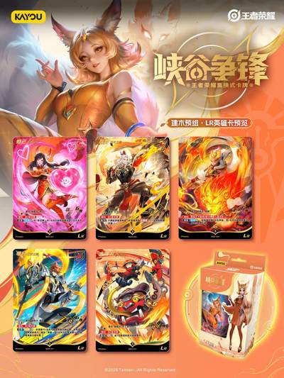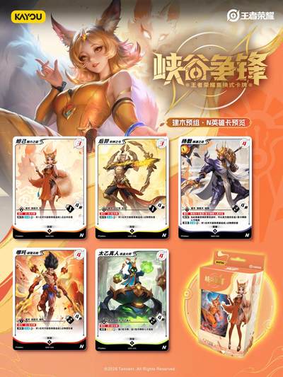 《峡谷争锋》建木预组·英雄一览 神庭在天,新生在世 《峡谷争锋》建木预组,汇聚来自神佑建木的五位英雄: 守护人间的擎天巨柱——杨戬 拥抱太阳光辉的神射手——后羿 建造真正奇迹的炼金术士——太乙真人 突破常理的不羁之火——哪吒 永远追寻着“心”的人偶——妲己。 更有妲己-少女阿狸、杨戬-永曜之星、后羿-辉光之辰等一系列高人气皮肤等你收藏! 曾在王者峡谷中叱咤风云的英雄们,如今化身实体卡牌,在牌桌之上再展锋芒。 集结热爱,对战畅快! 更多组合与对局玩法,等你亲自上桌体验!