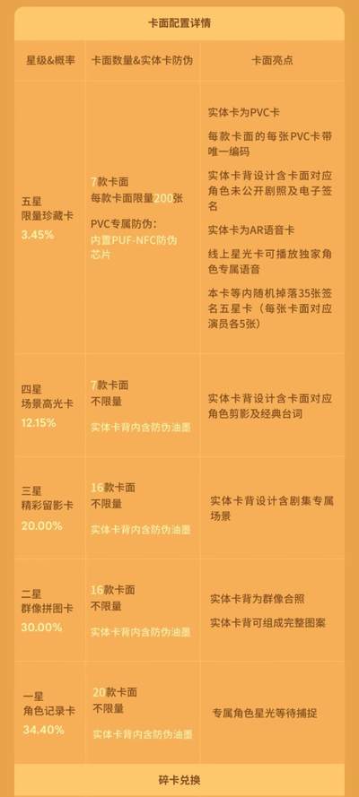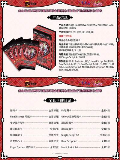 规格配置5 张 / 包,18 包 / 盒,24 盒 / 箱开箱即享沉浸式集卡乐趣。