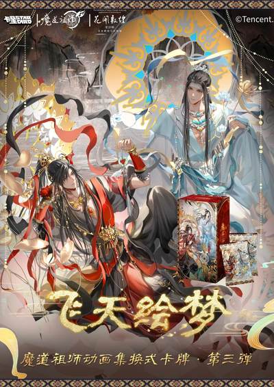 敦煌风起!魔道祖师动画第三弹全网热售中🔥 🐫“雍雍弦歌,丝路问道” 🪷卡星时代×魔道祖师动画×花开敦煌 🪷魔道祖师动画集换式卡牌·第三弹 🔥「飞天绘梦」系列热售ing🔥 🥳从纹彩到声纹,从敦煌到江湖。 🎙️三十余种卡系,六位配音老师亲签亮相; 🎗️敦煌艺术大师常沙娜亲签卡、印章卡、刺绣卡震撼登场。 一正一反,纳尽山河色,一笔一划,长留天地音。 💞此刻启程,江湖再逢✨