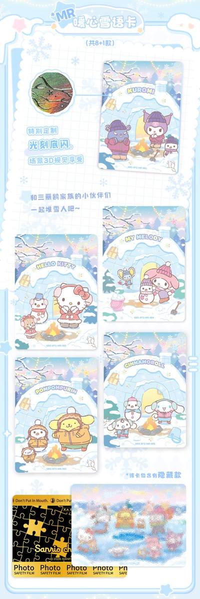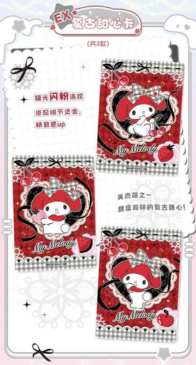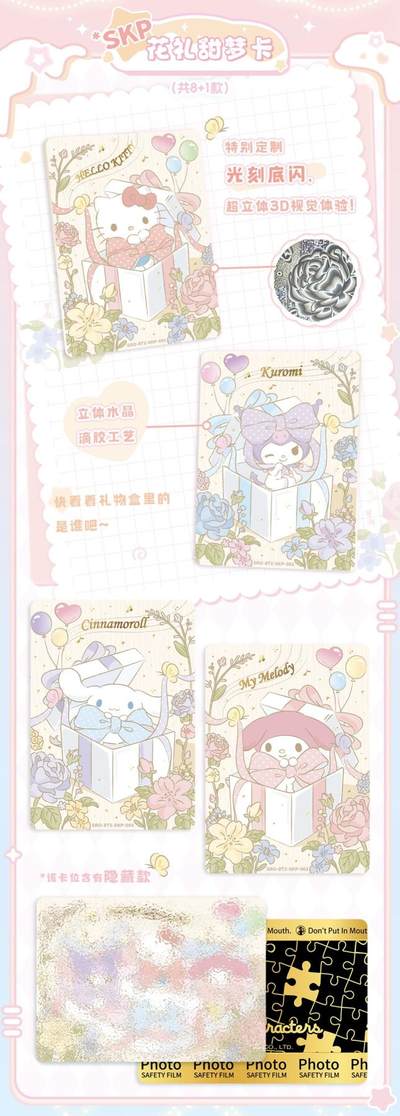 卡宝文创三丽鸥八弹2元包!还有金物料! 这次的SKP隐藏款还是首发柄图, PR卡采用趣味撕拉卡的形式 集齐全款9张普通PR可以兑换一张0.1gAU的金物料隐藏款PR!香香~ 还有随箱兑换的两本1宫格小卡册哦 稀有度大升级!还有彩虹背和黑金背[哇R]箱配一张隐藏! 狠狠期待啦,金物料务必手拿把掐。
