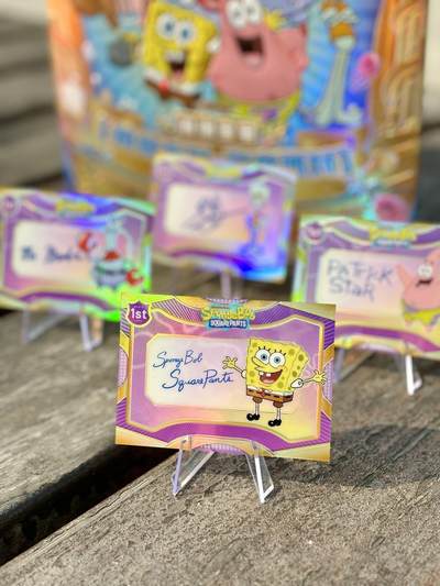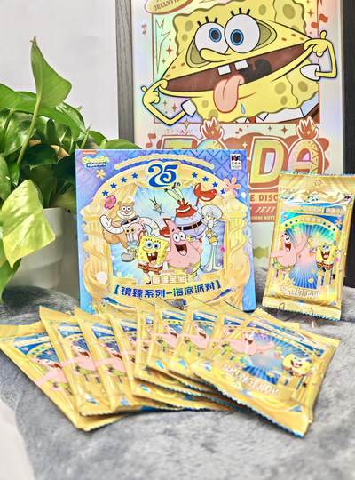 和我一起把比奇堡的快乐打包进收藏册吧✨ 万乐卡这套海绵宝宝镜臻系列,直接把比奇堡的欢乐派对搬进了收藏册😭 海绵宝宝镜臻系列这波真的把童年快乐拉满了: 🎉 典藏级庆典主题:金色边框+复古舞台设计,海绵宝宝、派大星、蟹老板全员集结,像一场永不散场的海底派对。 ✨ 签名卡质感封神:镭射闪卡+专属签名,每一张都blingbling的,拿在手里沉甸甸的,细节控狂喜! 📦 包装设计超用心:金色礼盒+炫彩卡包,拆箱仪式感直接拉满,送礼或自留都超有面儿。 打开卡包的瞬间,仿佛又回到了守着电视看海绵宝宝的夏天,童年DNA狠狠动了!把比奇堡的快乐永久收藏,这波直接封神🐚💛