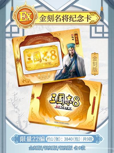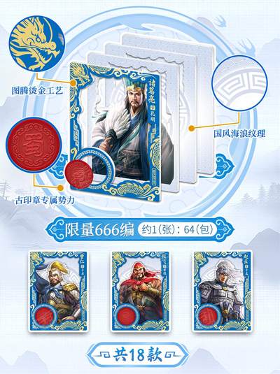 首发|集齐卡牌组建专属于你的战队吧 ✨️【新品开售】卡动文创×三国志8 REMAK ⚔️已为各位主公编制好16个卡位,卡动申请出战! 🚩使用#卡动三国志卡牌[话题]# 编制你的战队! 演绎千人千面,待鸣金为号 逐鹿中原,改写三国历史 - 📜【产品信息】 品名:三国志8 REMAKE 收藏卡(第1弹 群雄逐鹿) 规格:3张/包,16包/盒,全套443款