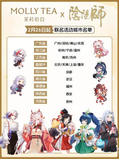 双厨狂喜❗️茉莉奶白X阴阳师联名攻略💛 阴阳师玩家集合啦🙋 茉莉奶白和阴阳师真的联名了!! 啊啊啊18城千店联动,这次真的梦回平安京!! ⏰时间:2月26日10点起 🪄周边:联名冰箱贴/联名水杯/联名镭射票/联名书签/联名新皮肤 周边攻略和城市清单详情看图趴~ 宝子们冲就对了!! ps:喝完奶茶记得撕开杯贴抽奖!百分百中奖~有机会得稀有游戏道具! 一边喝茉莉奶白一边拿周边还能抽奖真的不要太快乐啦🤩 2月26日,调好闹钟速速冲!!