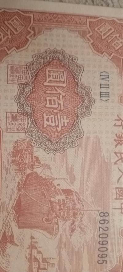第一套人民币一百元红轮船,网上淘来,长17cm宽7.05cm