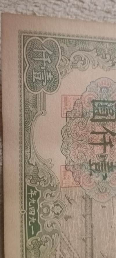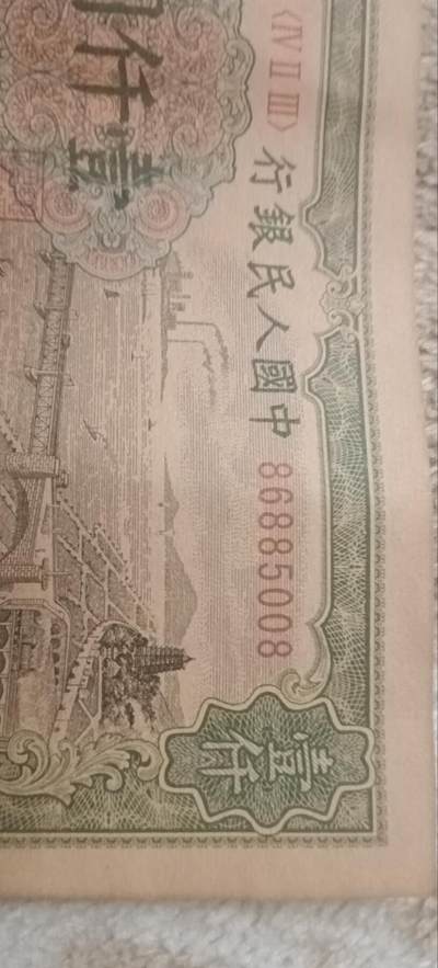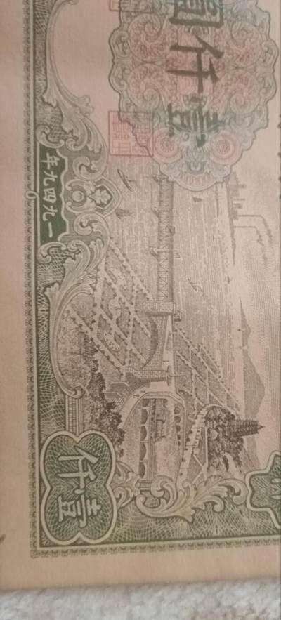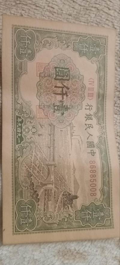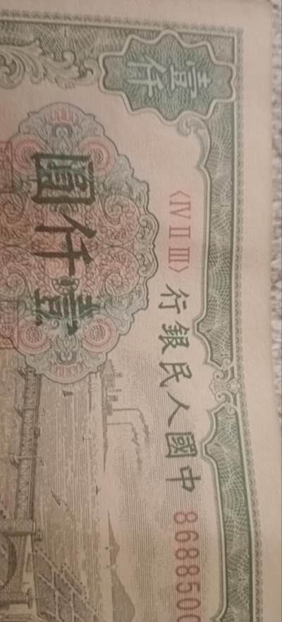第一套人民币一千元,网上淘来,长13.4cm,宽7.25cm