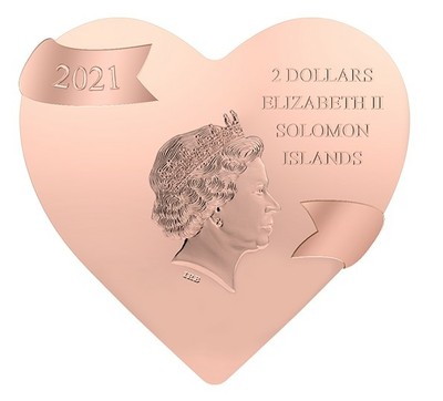 所罗门2021年情人节我爱你心形玫瑰金纪念银币