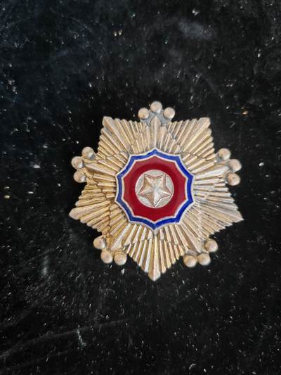 这是朝鲜的二级战士荣誉勋章,1950年设立,主要授予在战斗中立功的士兵、士官等人员,体现了勋章的荣誉内涵。